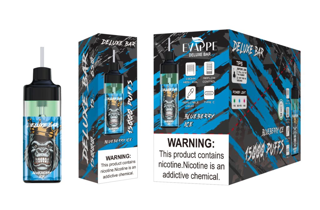 The Evappe Deluxe Bar 15000 is a compact delight, offering a 15ml e-liquid reservoir with a 2% 3% 5% nicotine concentration, guaranteeing an impressive 15000 puffs of unadulterated vaping enjoyment. Its 0.8Ω Mesh Coil tucked inside ensures a flavorful and seamlessly smooth vapor production with each inhale. Powered by a sturdy 650mAh battery, the Deluxe Bar 15000 is expertly designed to prolong your vaping pleasure. Encased in a vibrant and transparent shell adorned with street-style graffiti stickers, it serves as both a visual statement and a functional vaping companion, catering to vapers who appreciate the perfect blend of style and substance.